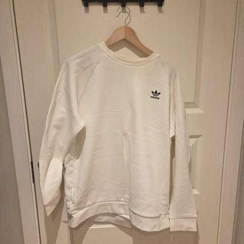 Adidas genser/sweatshirt med crewneck for herre i størrelse XL. 100% bomull. Klassisk Adidas-logo på brystet. En liten, nærmest usynlig flekk foran, se bilde.