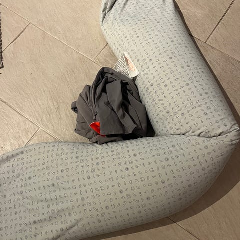 Pent brukt bbhugme ammepute i fargen blue melange. Behagelig ammepute som enkelt former seg etter kroppen og putens lengde og fasthet kan tilpasses. Avtakbart trekk, som kan vaskes i maskin på 40 grader og håndvaskbar innerpute. Veske medfølger. Det er ingen flekker eller hull på trekk eller pute, røyk- og dyrefritt hjem.