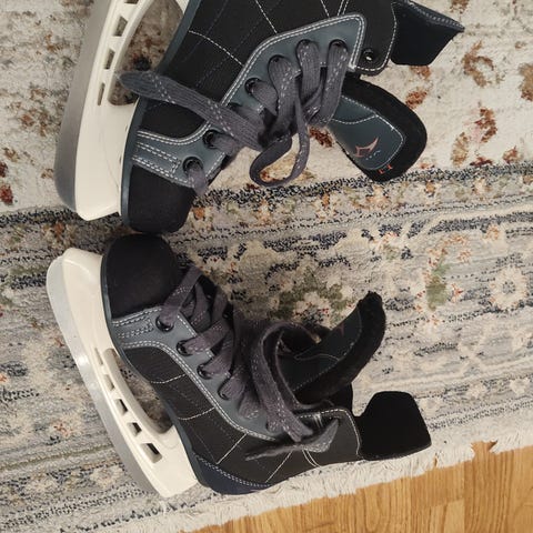 Skøytene er brukt et par ganger av min sønn. Men de må slipes da de har fått litt utenpårust på knivene Ellers i veldig fin stand