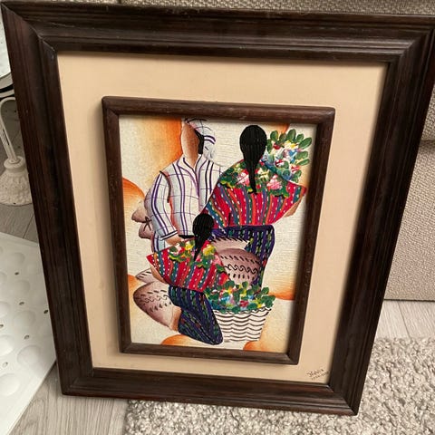 Vakker kunstplakat, trykk fra oljemaleri av kjent peruansk folk art kunstner, eduardo millones, måler høyde 50 cm og lengde 70 cm, små rift i kanten. Selges uten ramme.