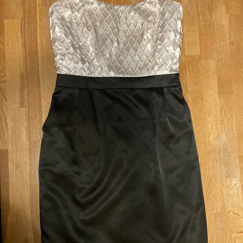 Pent brukt et par ganger. Underskjørt, spiler ved brystpartiet, og silikon/gummikant øverst så kjolen ikke sklir ned. Glidelås i ryggen.
