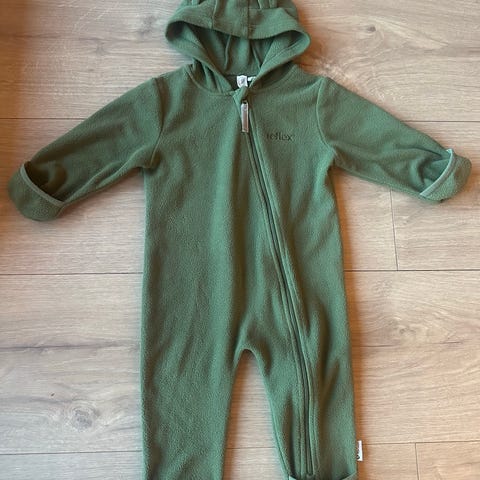 Reflex fleeceheldress for barn i størrelse 74 (liten i str). Heldressen er i grå med myk, lys fleece innside. Modellen har hette, glidelås i front og oppbrettbare kanter ved føttene. Unisex-passform som passer både gutter og jenter. Egnet som mellomlag eller kosedress inne og ute avhengig av temperatur.