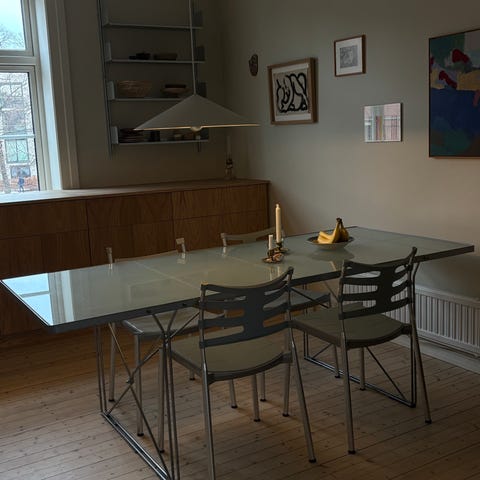 Usikker designer, men ganske likt til Niels Gammelgaards 1983 bord til IKEA og noen Vitra bord.