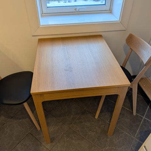 Bordet har et enkelt, funksjonelt design med rette linjer og kryssformet understell som gir god stabilitet. Størrelsen egner seg for 2–4 sitteplasser. Passer som spisebord på kjøkken eller i mindre stue, eller som arbeidsbord. Også passer som hagemøbler.