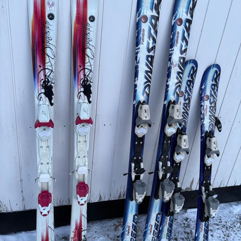 Skiene har midtbredde 68 mm og mål 103/68/90, egnet til preparerte bakker. Integrerte bindinger med justerbar DIN-verdi. Skiene er pent brukt med fin såle.