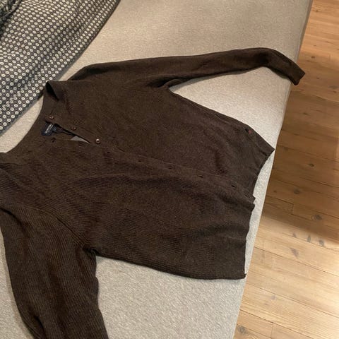 Varm og god strikkejakke fra Lexington i ull og alpakka med. Halvlang med knytebelte. Selges pent brukt.