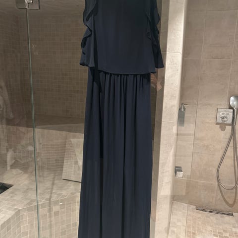 Selger en lang mørkeblå selskapskjole fra HM.