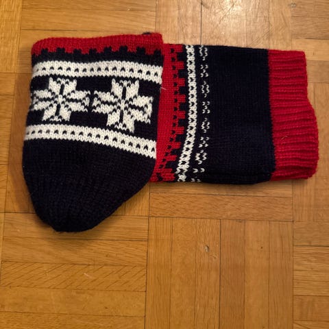 Varme høye strømper 45/46. Fot 30cm høyde fra hæl 65cm. Kan sendes.
