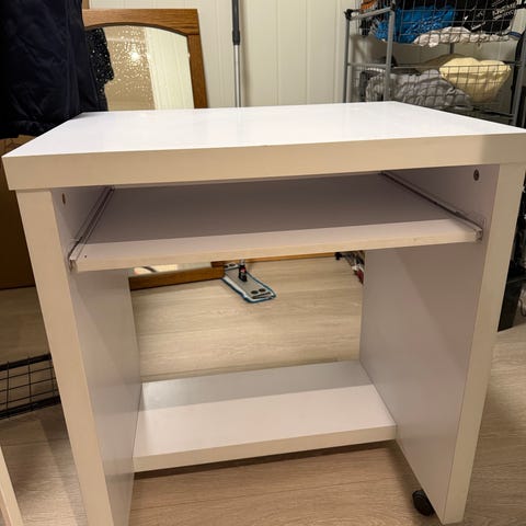 Brukt som sminkebord. Veldi stort å praktisk bord selges. Dessverre en del skader i topp platen så anbefaler å foliere eller kjøpe ny plate til toppen. Gode romslige skuffer med plass til mye.