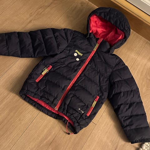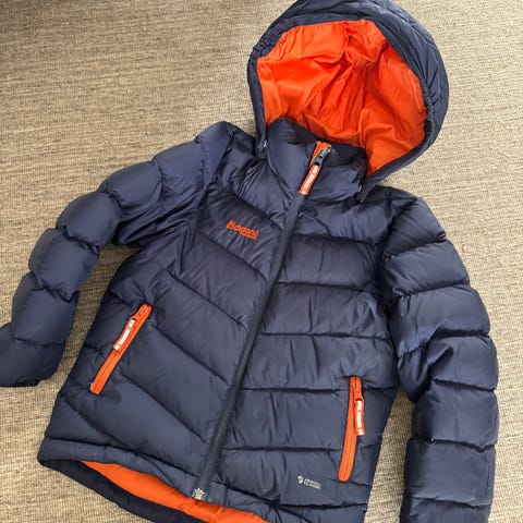 Bergans 76125 Down Kids Jacket dunjakke for barn i størrelse 110. Jakken er blå og passer fint som unisex. Den er varm og lett, med ytterstoff i vindtett og vannavvisende Pertex Quantum og fyll av RDS‑sertifisert dun. Modellen har avtakbar hette, gjennomgående glidelås foran, glidelåslommer i siden, refleksdetalj bak og forlenget ryggparti for ekstra varme. Egnet som varm ytterjakke til hverdagsbruk og uteaktiviteter i kjølig vær. Brukt av ett barn og i god stand uten skader eller hull. Kjøper betaler frakt og jakken sendes med Fiks Ferdig.