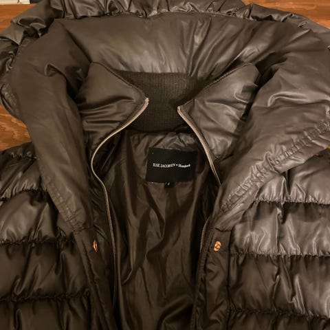 Str XS. Fargen er brun/grønn, litt glatt i stoffet.