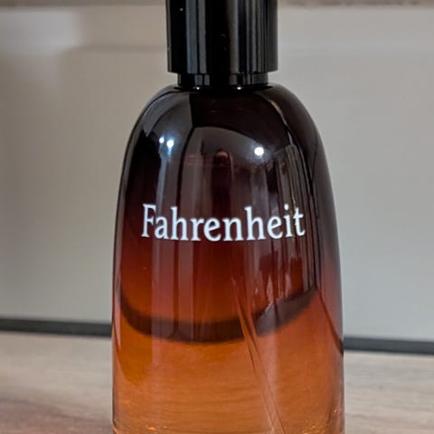 Dior Fahrenheit parfymeflaske. Klassisk duft i karakteristisk flaske med mørk rød og oransje fargeovergang. Egnet som duft til daglig bruk eller ved spesielle anledninger. Flasken har sprayfunksjon.