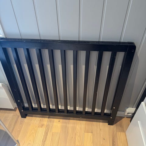 Sort lekegrind fra Saga baby. 100x100 cm. Brukt til to barn. Grinden er i god stand, men har fra levering av hatt noen «renne» merke fra fabrikk, se bilde. Det har ingen betydning for bruken. Følger ikke med madrass. Vi har brukt en lekematte som er 100x100 cm oppi, dette var fungert veldig fint. Griden er demontert og må hentes i Fredrikstad.