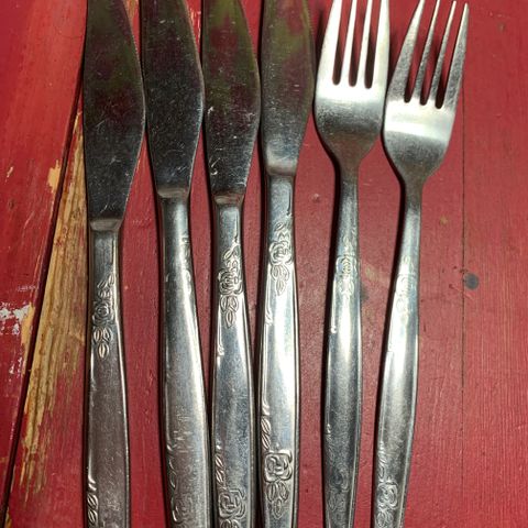 Ekte Kinesisk bestikk. To gafler, to spise skjeer og to sett med spise-pinner.