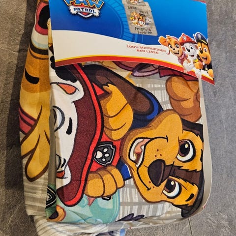 Paw Patrol barnehåndklær og en vaskeklut er klar for en eller ei ny Paw Patrol fan😀 I tillegg i pakken følger med en skål og bursdagsrekvisita. Duken er kun brukt en gang☺️