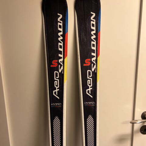 Salomon alpinski i rød farge med ibindinger. Skiene har sort såle og tradisjonell carvingshape. Passer til bruk i alpinbakke. Bindingene er montert på skinnen og kan vanligvis justeres noe i lengde etter støvlestørrelse. Egner seg for alpintkjøring i preparerte løyper.