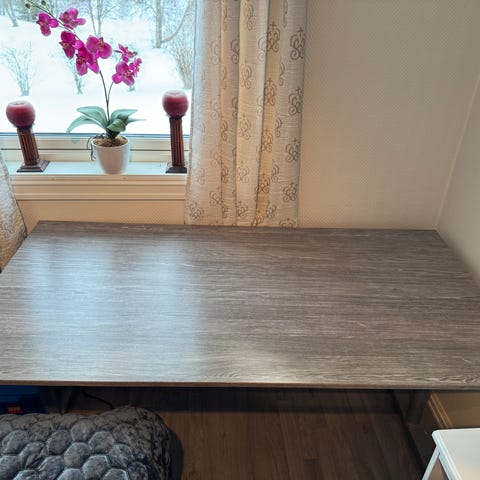 Meget pent og funksjonelt skrivebord med hylleseksjon selges pga plassmangel. Skrivebord inkl huylleseksjonen er 155 bred (115 pluss 40). Hylleseksjonen er 150 høy, skrivebordet 75 høy.