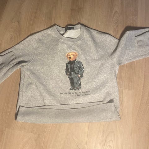Ralph Lauren Polo genser for herre i størrelse M. Genseren er brun og laget av merinoull. Den har V-hals og klassisk brodert logo på brystet. Passer til hverdagsbruk eller som et lag over skjorte eller T-skjorte.