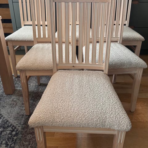Selger 4 stk sorte velourstoler. Hank på ryggen med løvehode. Pent brukt,noen bruksmerker på bena .