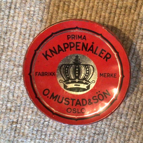 VINTAGE HIRSCH knappenål-boks med innhold