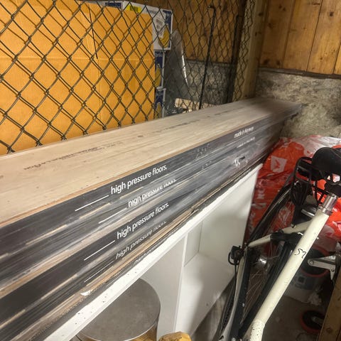 Rester av eldre flislegging av bad. Ca 60 fliser av de grå og ca 30 av de hvite.