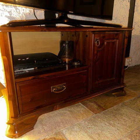 Topp-platen har bruksmerker, men er til gjengjeld av heltre og kan enkelt slipes/males om.