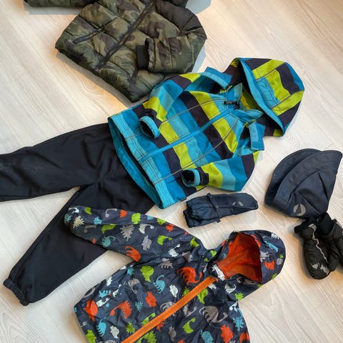 Klespakke barnehage gutt boblejakke yttertøy hettejakke strikk joggebukse barnehagetøy