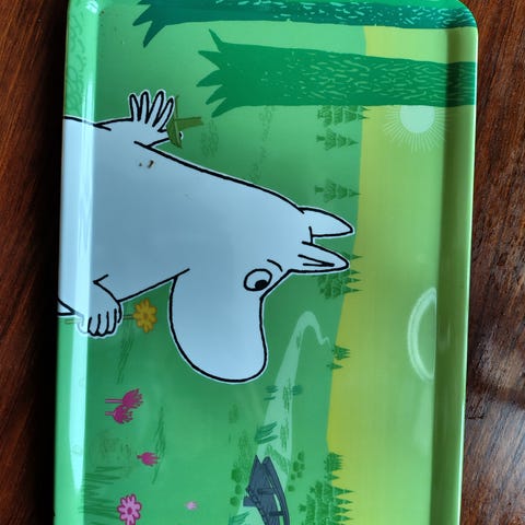 Selges ett nesten ubrukt mummi serveringsbrett til 100,-