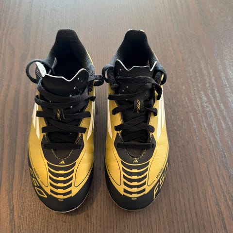 Adidas fotballsko for barn i størrelse 30. Unisex-modell i gull og svart med lisser og knotter under sålen til bruk på gress. Overdel i syntetisk materiale og yttersåle i plast/gummi for godt grep på banen. Passer til både gutter og jenter som trenger fotballsko i størrelse 30.