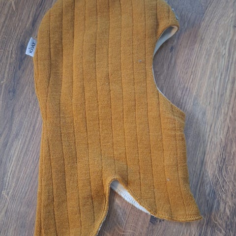Er en større flekk nederst forran på halsen og litt nederst på åpningen inni men er av mindre betydning (se bilde). Ingen hull. God og varm lue. Ellers fra dette er den pent brukt.