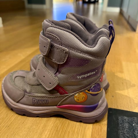 Veldig gode, lette og varme vintersko kjøpt forrige sesong. Kun brukt av ett barn. De er synlig brukt, men det er ingen slitasje som påvirker funksjonen. Nypris 6-700 kr
