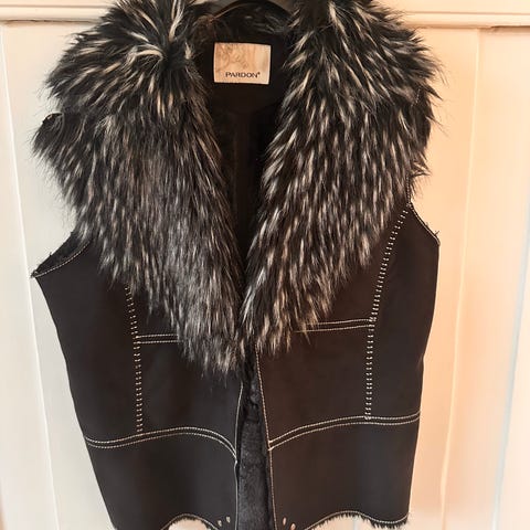 Pent brukt lammeskinns/pels vest. Kan brukes med pelsen ut eller semsket siden ut.