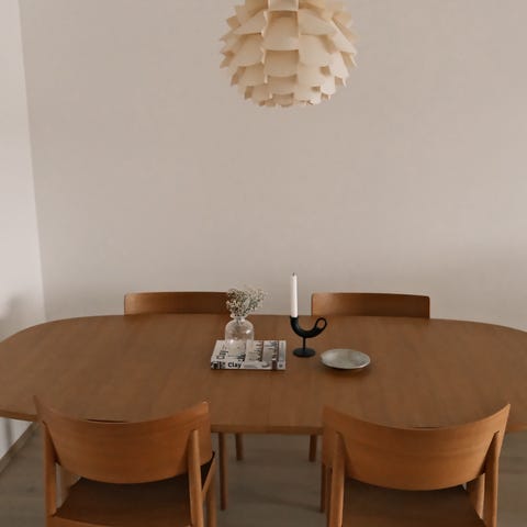 Lampen kjennetegnes av nordisk minimalisme og organiske, afrundede former med en varme fra et tre-detaljert toppstykke i oljet valnøtt.