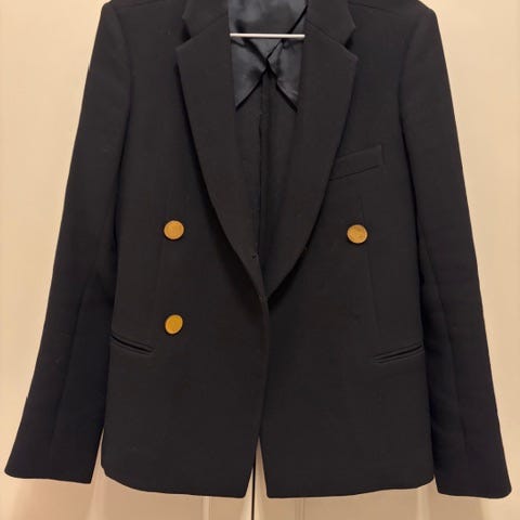 Marc Jacobs ullkåpe i størrelse M. Normal i størrelsen. Modell på bildet er 175 cm høy. Kåpen er svart og laget i eksklusiv ullmateriale.. Den har dobbeltspent lukking med dekorative knapper i metall foran, klassisk krage og innsvinget fasong. Baksiden har søm- og leggdetaljer som gir en mer definert silhuett. Innsiden er helfôret med stripet. Kåpen ble kjøpt av min mor i USA for noen år siden. Kåpen har en tykk og god ullkvalitet med virgin wool som er å beregne som høykvalitets ull. Foret er i naturmaterialer. Marc Jacob’s er kjent for sine eksklusive vesker og det er vanskelig å få tak i ett av hans designplagg i Norge. Ta kontakt om du har andre spørsmål😊