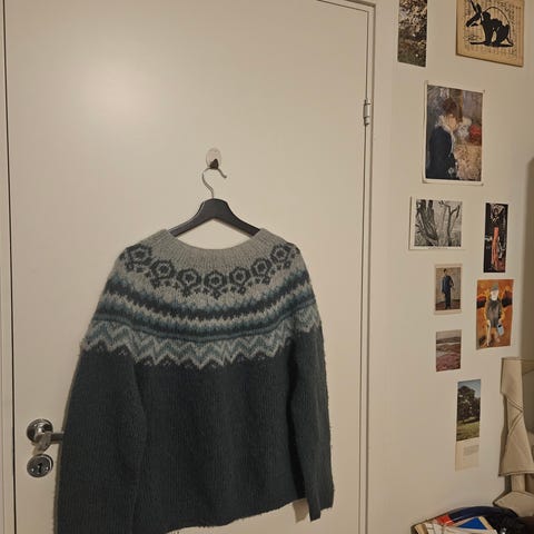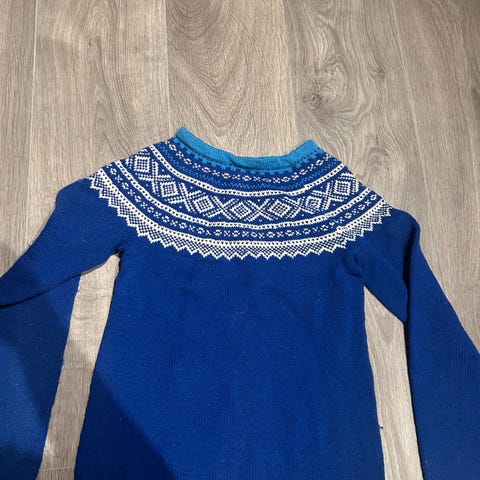 Hjemmestrikket Tiril Snøkrystall-genser (Ubrukt) ❄️🩵❄️