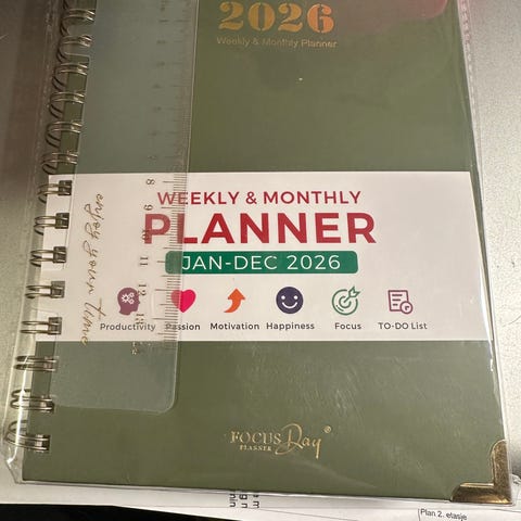 Weekly planner selges da den ikkje blir brukt, dei få sidane som er brukt har blitt revet ut så den er klar for bruk