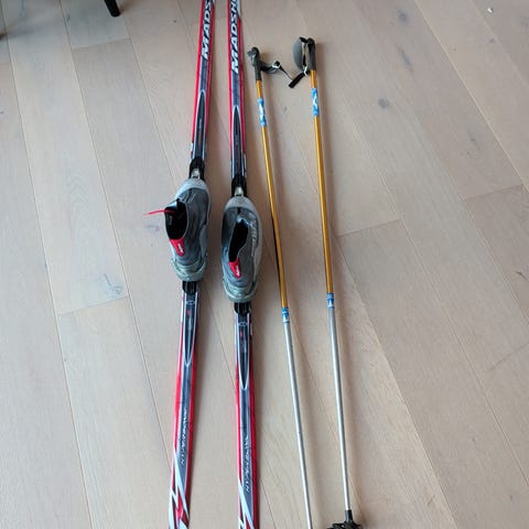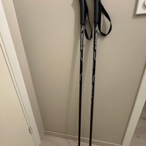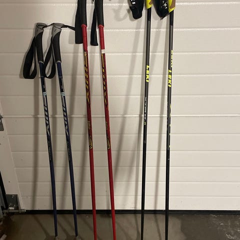 Riktig lengde på staver til langrenn (klassisk) er ca. skulderhøyde (30 cm under kroppshøyde).