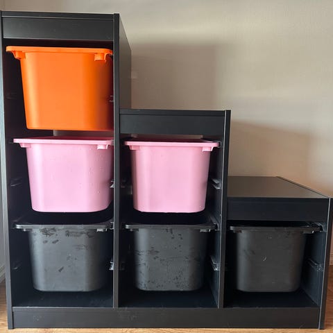 Kasser i ulike farger og størrelser som passer kan kjøpes på IKEA.