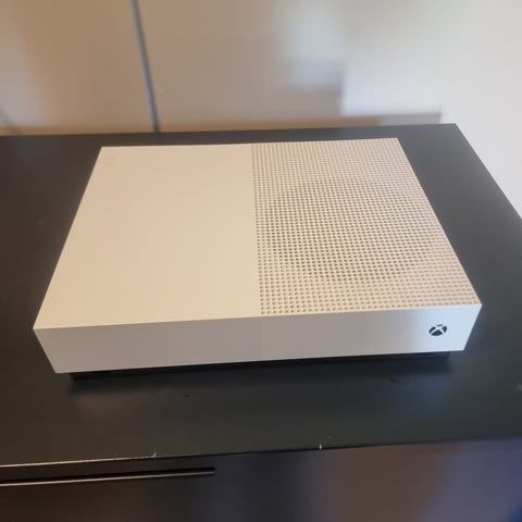 Microsoft Xbox One S All Digital Edition spillkonsoll i hvit farge.