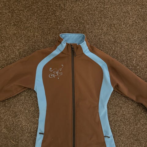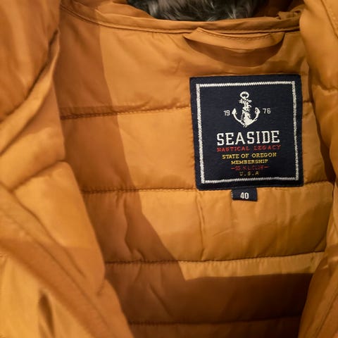Twentyfour jakke for dame i størrelse M (merket som 38). Jakken er gul og laget i polyester. Den har gjennomgående glidelås foran, hette og vattert, quiltet mønster. Passer som lett ytterjakke til hverdagsbruk og tur i overgangssesonger.