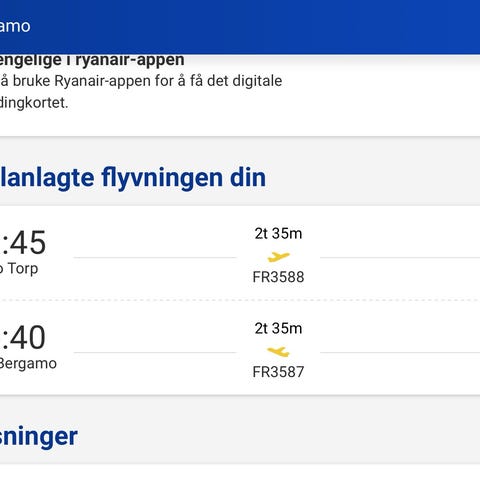 2 stk flybilletter fra Las Palmas til Oslo 21.februar med Norwegian til salgs