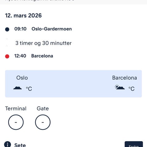 2 stk flybilletter fra Las Palmas til Oslo/Gardermoen lørdag 21. februar selges.