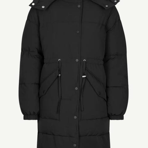 Samsøe Samsøe vinterjakke i dun til dame i størrelse S, men vil si den er mer en M. Jeg er M/L og har brukt jakken fint, men får ikke tykk ullgenser under.