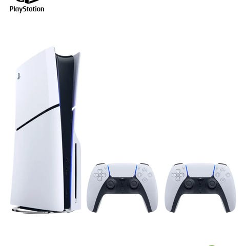 Sony Playstation 5 spillkonsoll i hvit farge. Konsollen leveres med en trådløs kontroller (DualSense) som vist på bildet. Playstation 5 støtter moderne spill i høy oppløsning, har innebygd lagring og tilkoblingsmuligheter for HDMI, USB og nettverk. Egnet for bruk med kompatible Playstation 5-spill og til strømming av digitalt innhold via støttede apper og tjenester.
