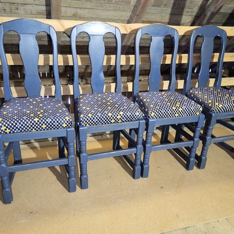 2 stk rødmalte spisestuestoler i god stand med sittehøyde 47cm selges samlet. Kan hentes i Øyer eller på Manglerud i Oslo. Frakt til Oslo 100 kr.