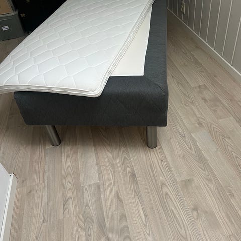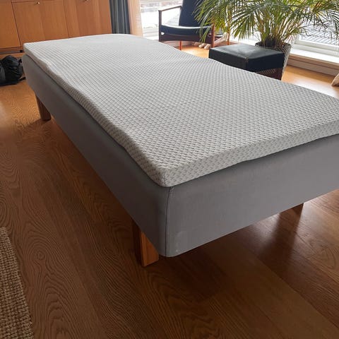 Den er sjeldent brukt og kjøpt for 4 måneder siden. Over Madrassen medfølger