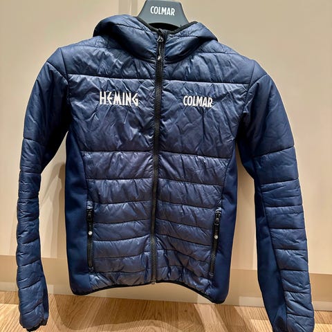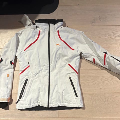 Kjus skijakke i blå farge med hvite og oransje detaljer. Jakken har hette og hel glidelås foran. Designet med markerte kontrastfelt på ermer, bryst og rygg. Passer til bruk i bakken og andre utendørsaktiviteter i kaldt vær. Materialet fremstår som teknisk ytterstoff egnet for ski- og vinterbruk.
