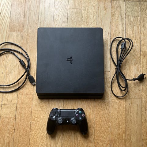 Sony Playstation 4 Slim 1TB harddisk med kontroll som er i veldig bra stand og funker som den skal. strømkabel til kontroll, strømkabel til konsol samt HDMI kabel medfølger. Alt funker som det skal. Konsoll er nettopp renset innvendig for støv. Bråker ikke mere enn den bør. Nettopp nullstilt og klar til ny bruker. Selges da den ikke blir brukt.