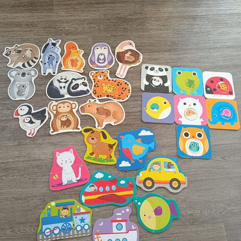 Puslespill med 4 puslespill i. Litt bruksmerker.