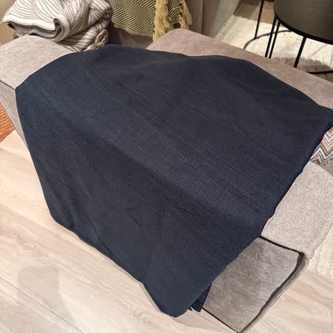 To stk Amungen lysdempende gardin fra jysk i svart. Str 140x175. Gardinen har rynkebånd øverst for oppheng på skinne eller stang med ringer.